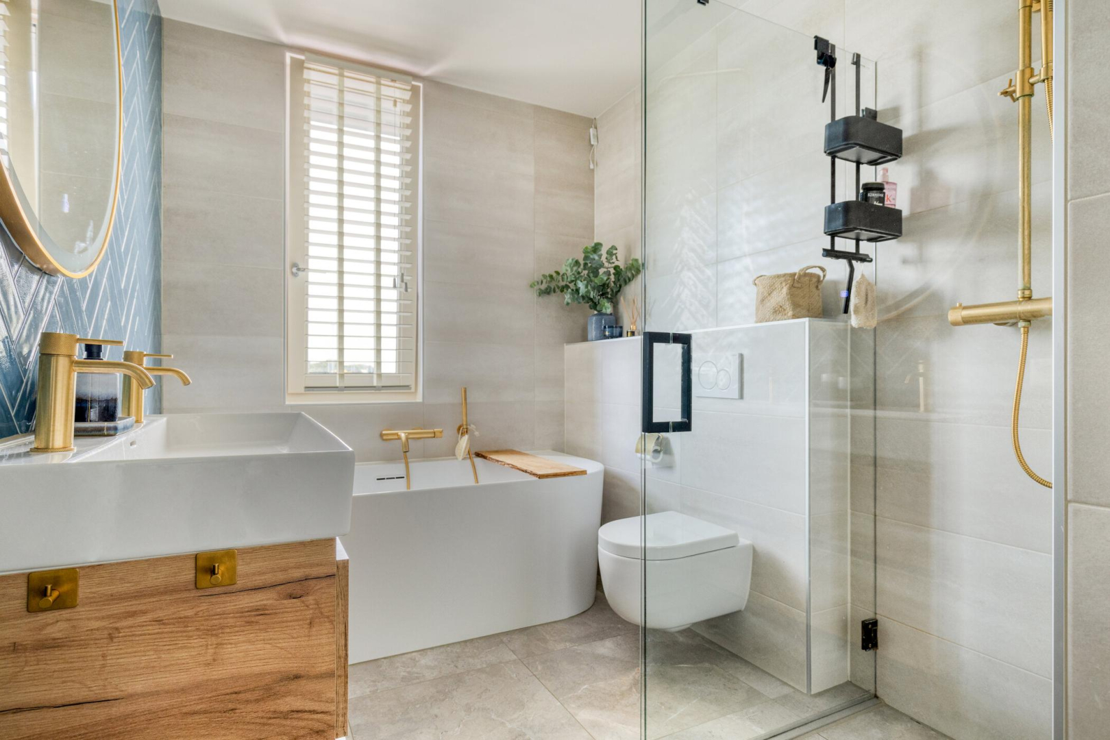 | Badkamervooziening | ligbad, toilet, douche, wastafelmeubel, vloerverwarming |
