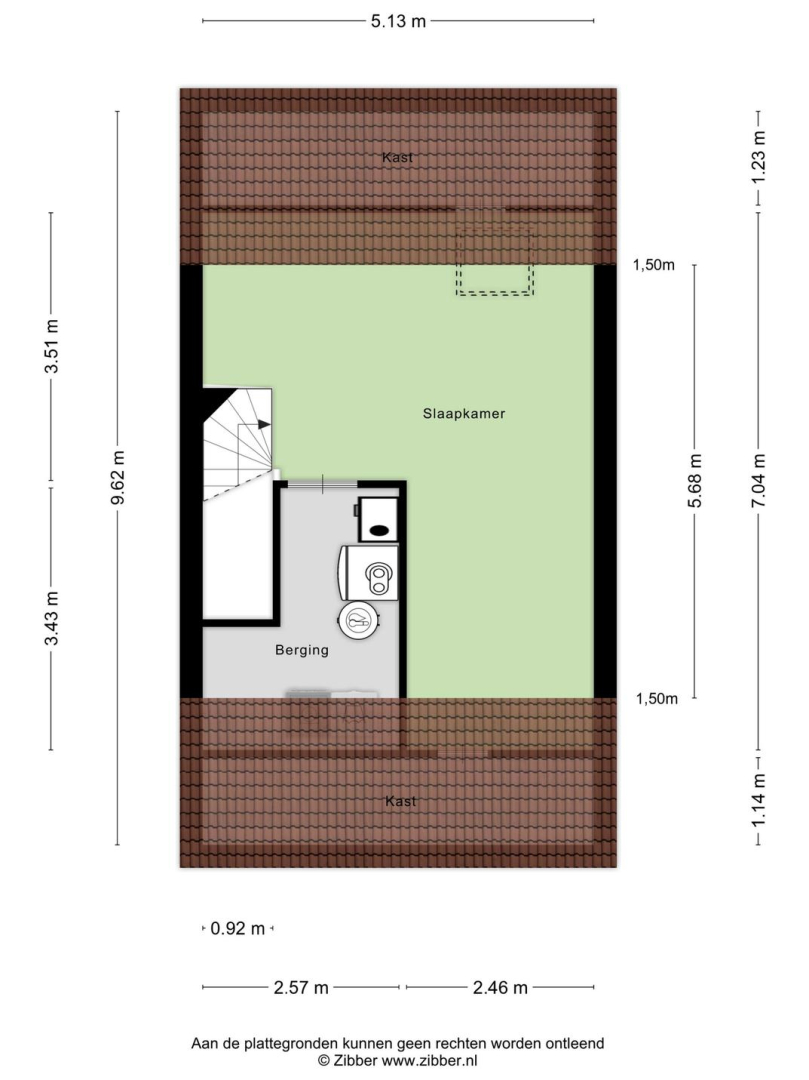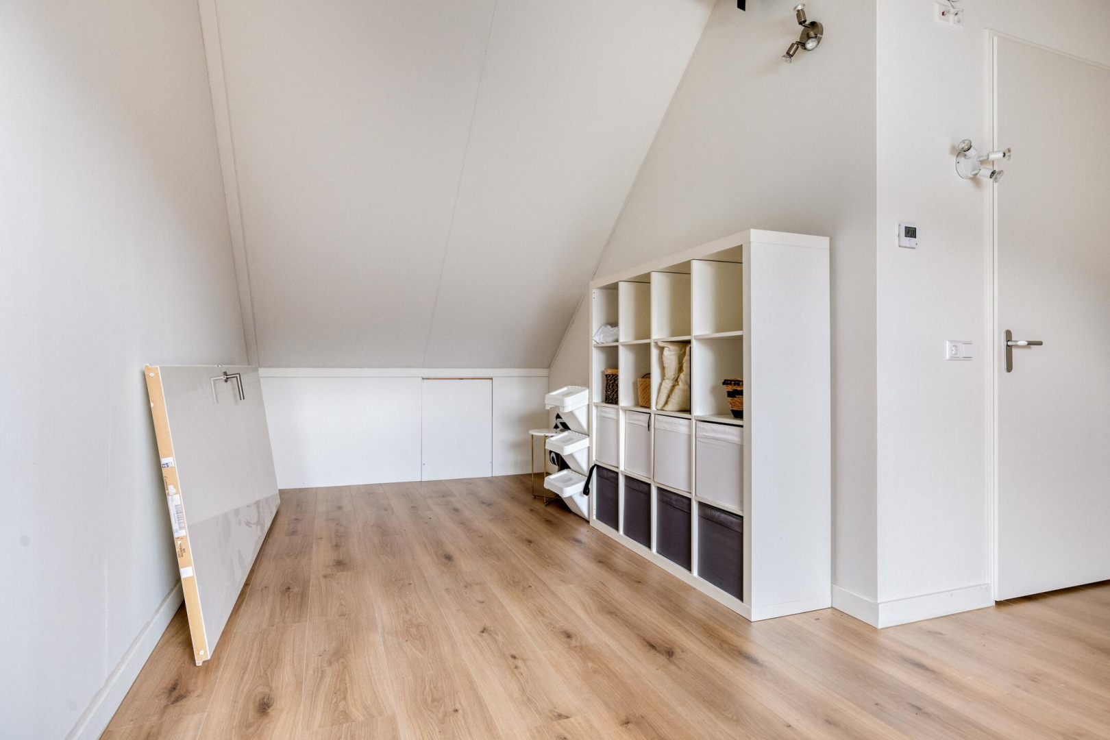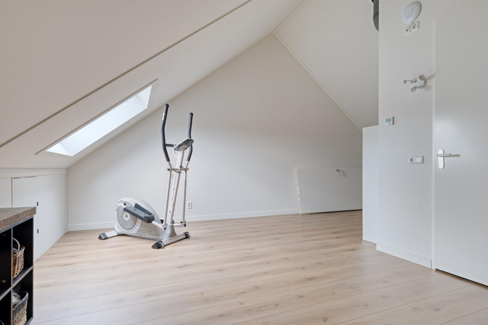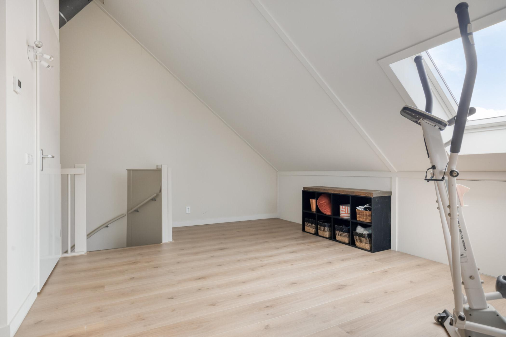 De zolderverdieping beschikt over een ruime kamer. Daarnaast is er een aparte berging met de warmtepomp, warmte-terug-win installatie, een extra boiler en een wasmachineaansluiting. Dankzij de royale afmetingen en de vele mogelijkheden kunt u deze verdieping geheel naar eigen wens inrichten; van een extra slaapkamer tot een comfortabele werk- of hobbyruimte.