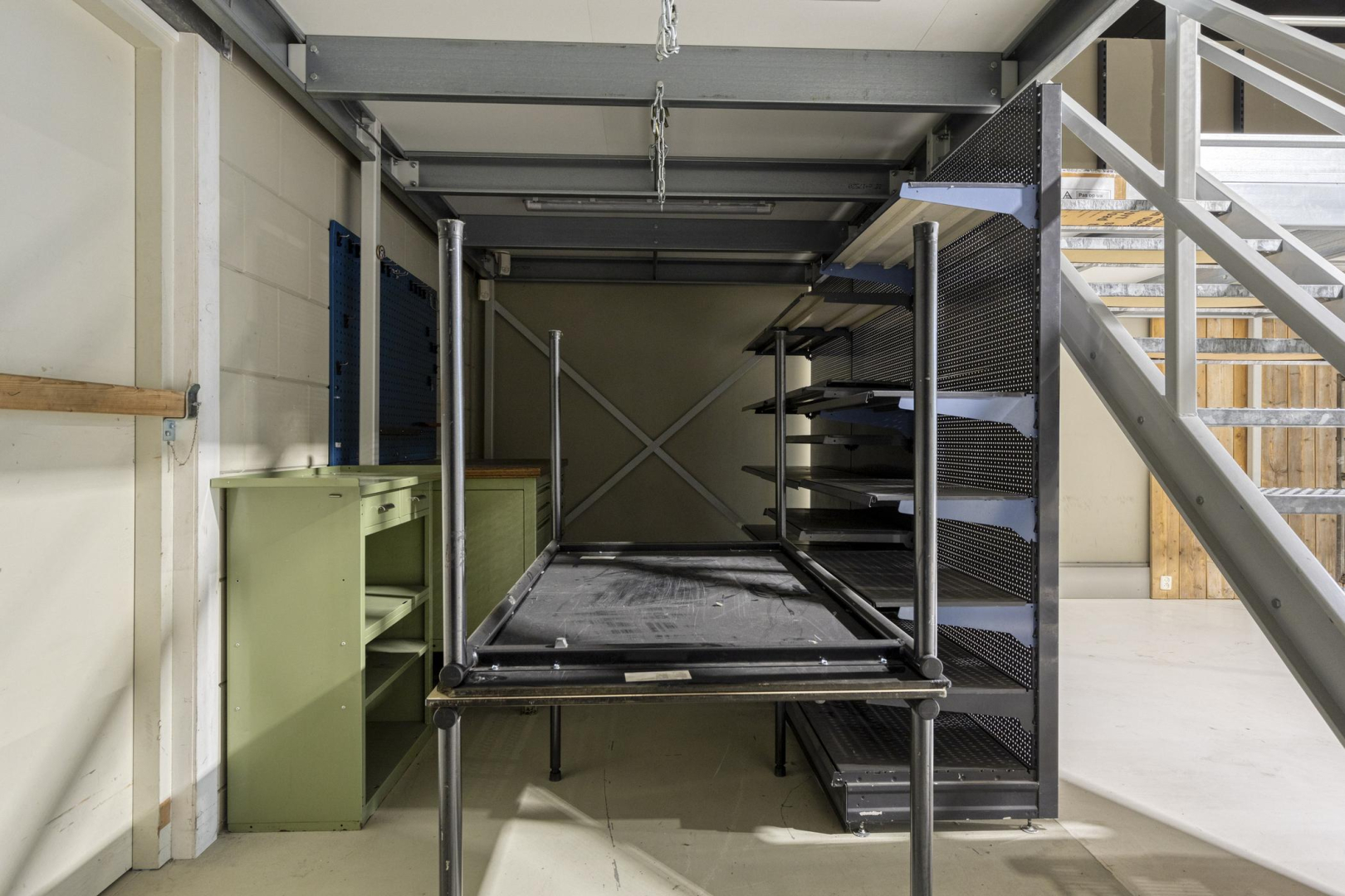 Bedrijfspand gelegen op het industrieterrein Sassenheim-Zuid, aan de rand van Sassenheim. De bedrijfsunit heeft een totale oppervlakte van circa 450 m², verdeeld over drie verdiepingen van elk circa 150 m², met op iedere etage een ruime bedrijfsruimte. Op de eerste verdieping bevinden zich daarnaast een kantoor, een berging en een toilet. Voor het pand liggen zes eigen parkeerplaatsen. Het pand is voorzien van 24 zonnepanelen en op de begane grond en 1e verdieping is een heater aanwezig. Locatie Perfect gelegen aan de rand van Sassenheim en Voorhout, midden in de Duin- en Bollenstreek. Dankzij de nabijgelegen oprit naar de A44 is het pand uitstekend bereikbaar vanuit de grote steden Amsterdam, Rotterdam, Den Haag, Leiden en Haarlem. Ook het station van Sassenheim en de uitstekende busverbindingen dragen bij aan de optimale bereikbaarheid. Indeling: Begane grond: Entree via de loopdeur naar een grote open bedrijfsruimte met hoge plafonds en een ruime vide. De aanwezige goederenlift (max. 1.000 kg) maakt het verplaatsen van materialen eenvoudig. Vanuit de bedrijfsruimte geeft een vaste trap toegang tot de eerste verdieping. 1e Verdieping: Trapopgang naar de eerste verdieping met toegang tot de bedrijfsruimte. Op deze verdieping bevinden zich tevens het toilet, een kast met de opstelling van de cv-ketel, een pantry met spoelbak, en een kantoorruimte met daglicht. Daarnaast is er een ruime open werkruimte met werkbanken en opslagmogelijkheden. 2e Verdieping: Overloop met toegang tot een royale bedrijfsruimte, voorzien van een lichtkoepel waardoor er extra daglicht binnenvalt. De ruimte is ingericht met ruime stellingen, ideaal voor opslag. Vanuit deze bedrijfsruimte is er toegang tot een tweede, kleinere bedrijfsruimte.