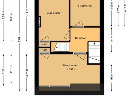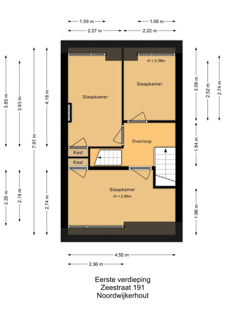 1e Verdieping: overloop met trap naar zolder, 2 slaapkamers aan de achterzijde en een slaapkamer aan de voorzijde, allen met dakkapel.