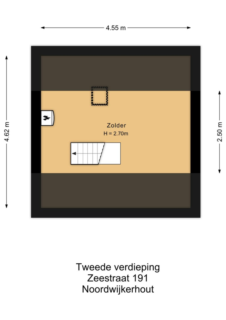2e Verdieping: zolder met dakraam en opstelling voor de cv-ketel.