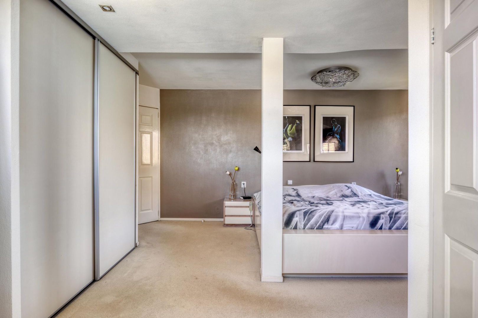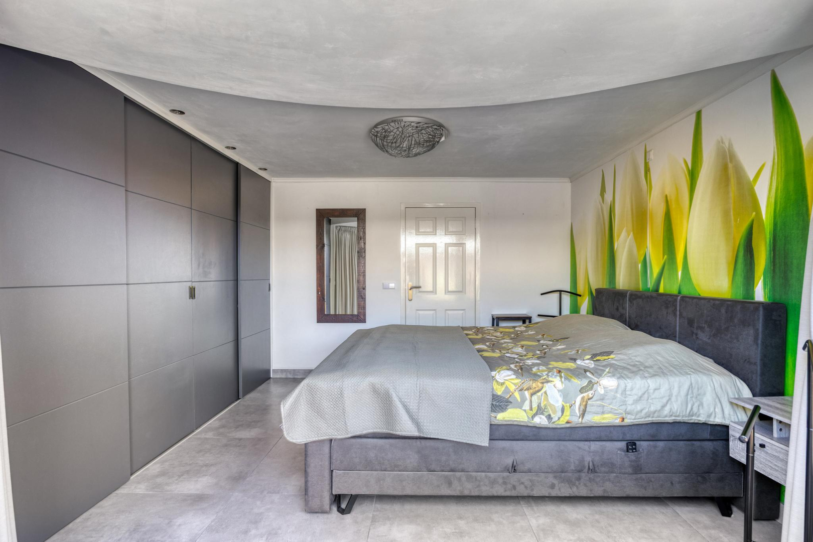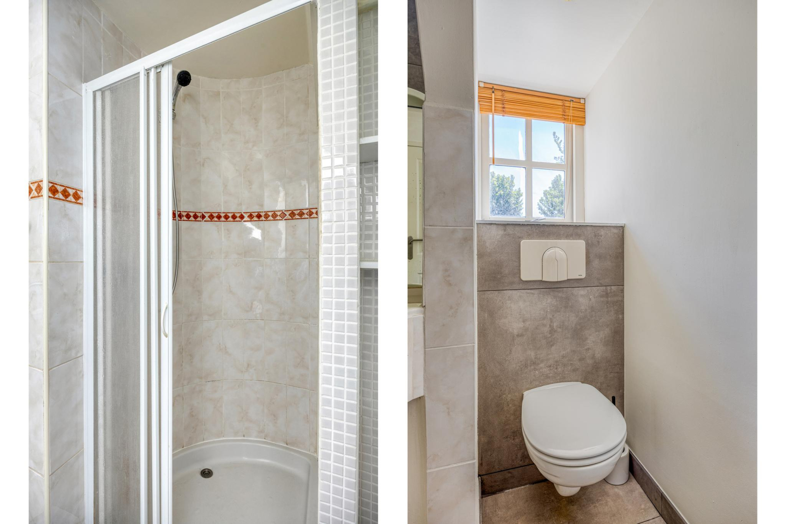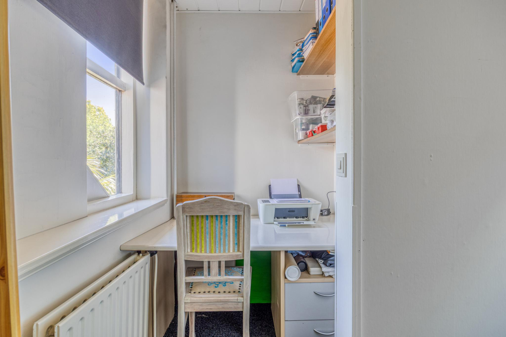 Een vaste trap leidt naar de eerste verdieping met een nette laminaatvloer op de overloop en prachtige paneeldeuren. Hier bevinden zich drie slaapkamers. Een ruime kamer met dakkapel, laminaat, veel licht en momenteel in gebruik als sport-/werkkamer. Een royale master bedroom met vaste kast, aparte inloopkast, vloerbedekking, dakkapel en meerdere ramen. Een derde, L-vormige slaapkamer met dakkapel en vloerbedekking. Ook op deze verdieping bevindt zich een badkamer met douchecabine, wastafel, wandcloset en handdoekradiator – ideaal voor een groot gezin of gasten.