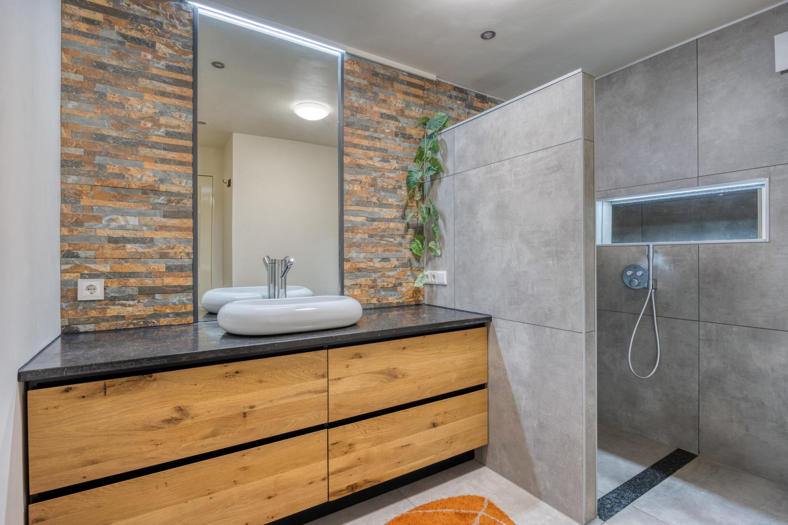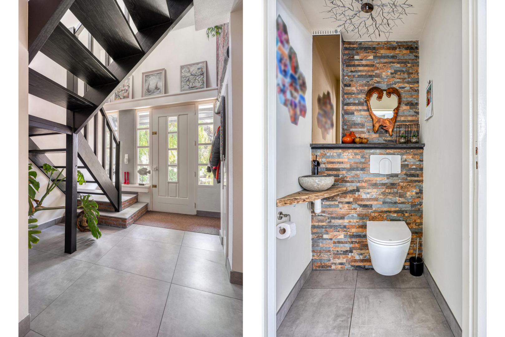 Deze unieke woning biedt niet alleen een sfeervol hoofdverblijf, maar ook twee volledig uitgeruste gastenverblijven, waarvan één grenzend aan het hoofdverblijf, elk met een eigen entree en veel privacy. Ideaal voor gasten, mantelzorg of kantoor aan huis. Het eerste verblijf is volledig gelijkvloers en voorzien van een wandcloset met fontein en een praktische vaste kast. De ruime woonkamer heeft een fijne lichtinval en een open keuken met een inductiekookplaat, een RVS afzuigkap, een magnetron en een inbouw koelkast. De slaapkamer heeft twee vaste kasten en de badkamer is voorzien van een inloopdouche met wastafel. Via een deur in de woonkamer is er direct toegang tot de tuin.