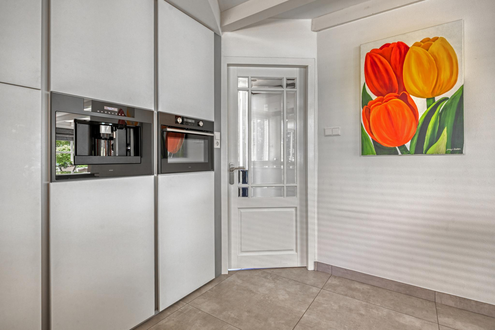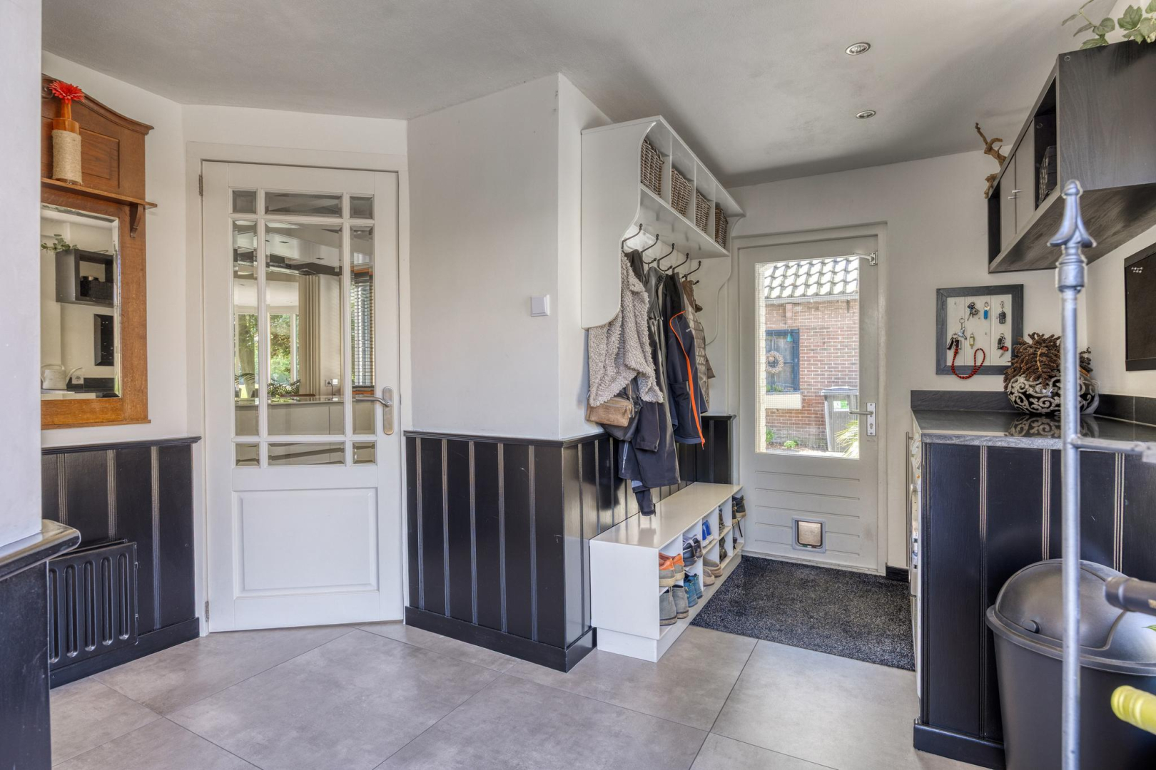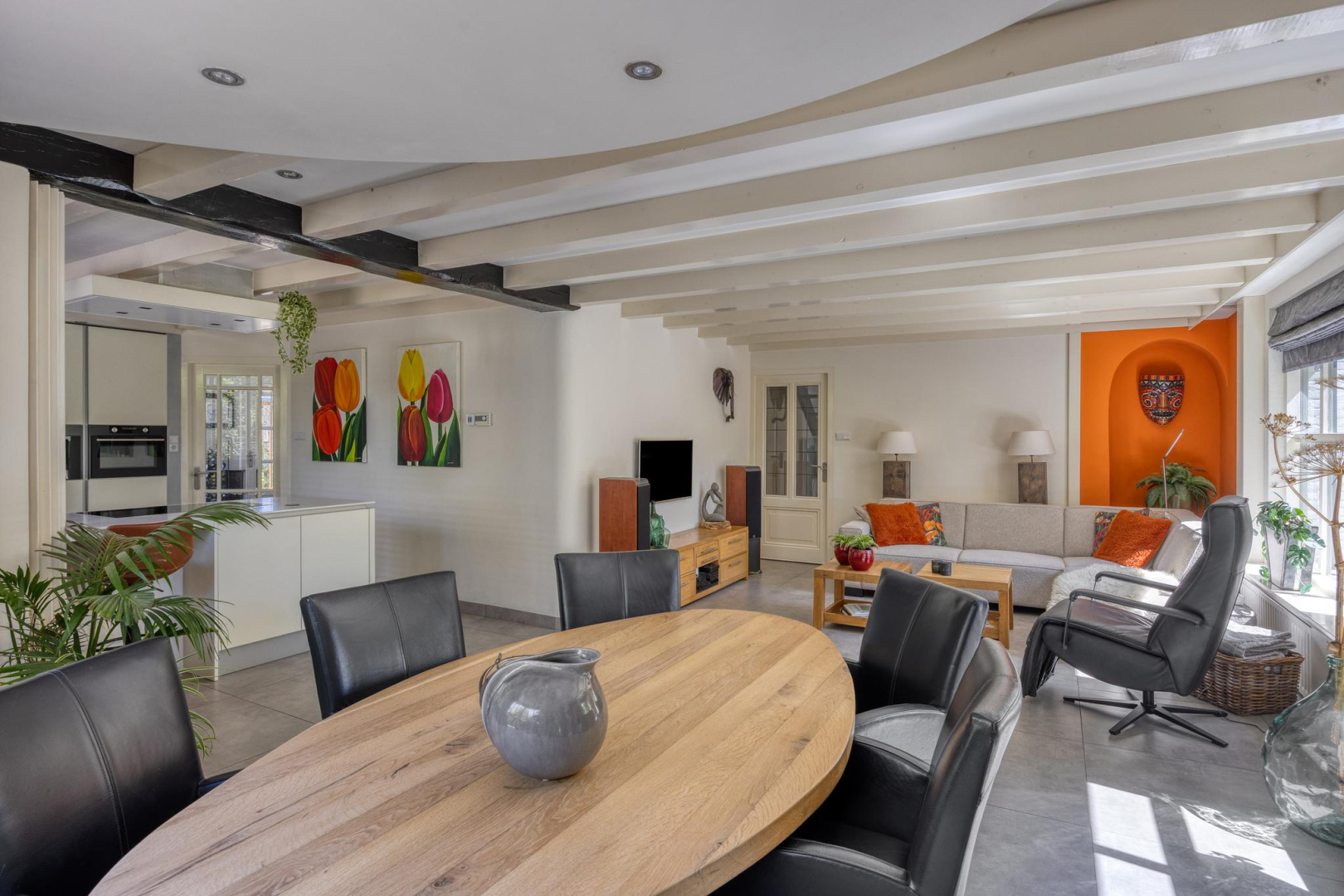 Via de overdekte entree betreedt u de ruime hal, voorzien van een meterkast, een modern wandcloset met fontein en toegang tot de verschillende vertrekken. Op de begane grond bevindt zich een ruime slaapkamer met een charmante erker, openslaande deuren naar de heerlijke tuin en een vaste kastenwand – ideaal als master bedroom of comfortabele werkkamer. Ook vindt u in deze woning een badkamer op de begane grond, compleet met een stijlvol wastafelmeubel met waskom en composiet blad, een inloopdouche met regen- en handdouche, een handdoekradiator en sfeervolle inbouwspots in het plafond. De lichte en royale woonkamer ademt sfeer dankzij het fraaie balkenplafond, een erker, ramen met roedeverdeling en keramische vloertegels met comfortabele vloerverwarming. De open keuken sluit naadloos aan op de woonkamer en is een waar paradijs voor kookliefhebbers. De moderne, greeploze keuken is uitgerust met een inductiekookplaat, een afzuigkap, een vaatwasser en een wandmeubel met daarin een koel-vriescombinatie, ingebouwde koffieautomaat en combi oven/magnetron. Dankzij de vele kasten is er volop opbergruimte. Vanuit de keuken loopt u zo de bijkeuken in. Hier vindt u de was- en droogapparatuur en een kast met daarin de CV ketel en hybride warmtepomp. Vanuit de bijkeuken heeft u toegang tot de tuin en de oprit met garage.