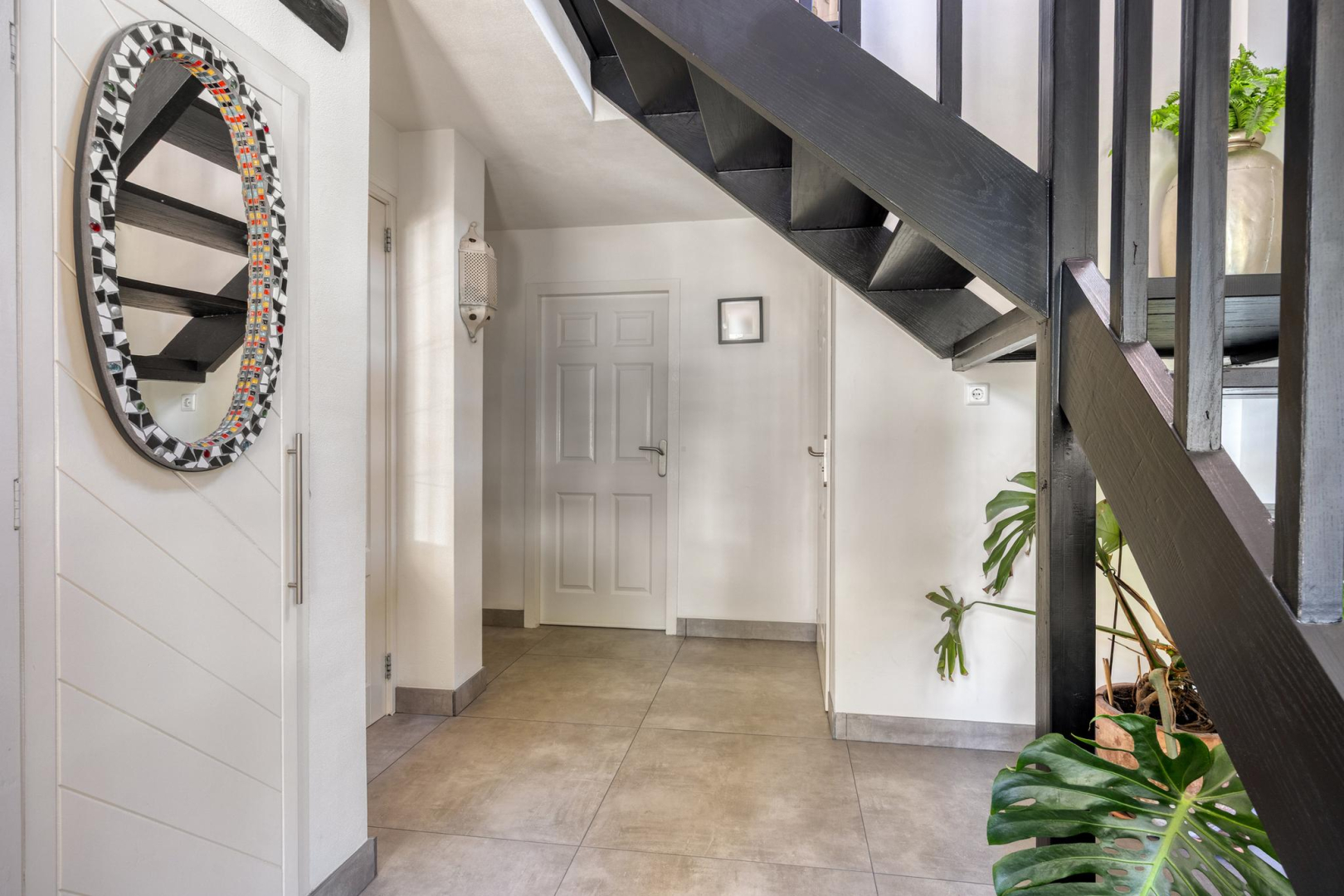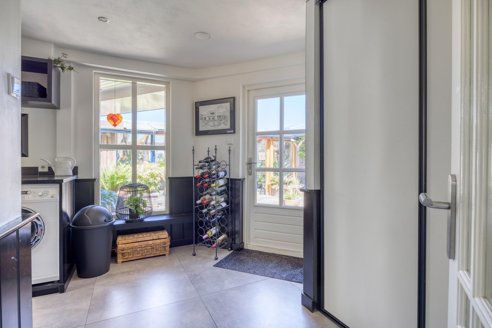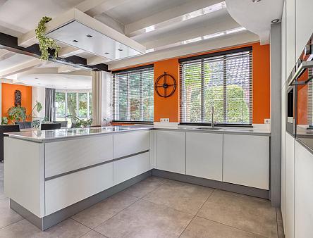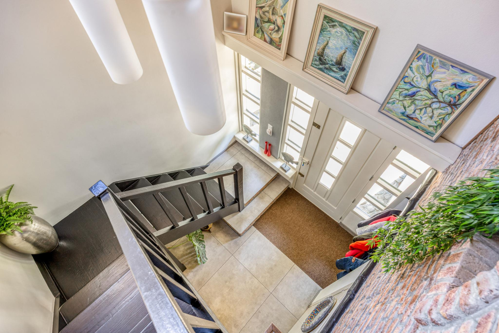 Via de overdekte entree betreedt u de ruime hal, voorzien van een meterkast, een modern wandcloset met fontein en toegang tot de verschillende vertrekken. Op de begane grond bevindt zich een ruime slaapkamer met een charmante erker, openslaande deuren naar de heerlijke tuin en een vaste kastenwand – ideaal als master bedroom of comfortabele werkkamer. Ook vindt u in deze woning een badkamer op de begane grond, compleet met een stijlvol wastafelmeubel met waskom en composiet blad, een inloopdouche met regen- en handdouche, een handdoekradiator en sfeervolle inbouwspots in het plafond. De lichte en royale woonkamer ademt sfeer dankzij het fraaie balkenplafond, een erker, ramen met roedeverdeling en keramische vloertegels met comfortabele vloerverwarming. De open keuken sluit naadloos aan op de woonkamer en is een waar paradijs voor kookliefhebbers. De moderne, greeploze keuken is uitgerust met een inductiekookplaat, een afzuigkap, een vaatwasser en een wandmeubel met daarin een koel-vriescombinatie, ingebouwde koffieautomaat en combi oven/magnetron. Dankzij de vele kasten is er volop opbergruimte. Vanuit de keuken loopt u zo de bijkeuken in. Hier vindt u de was- en droogapparatuur en een kast met daarin de CV ketel en hybride warmtepomp. Vanuit de bijkeuken heeft u toegang tot de tuin en de oprit met garage.