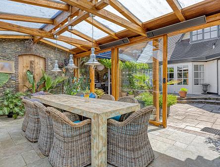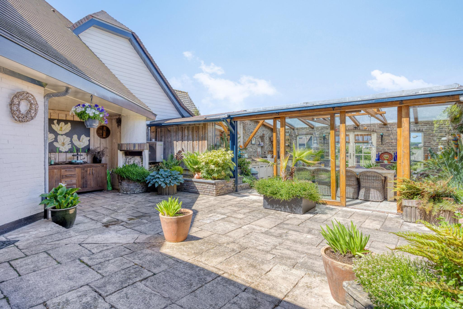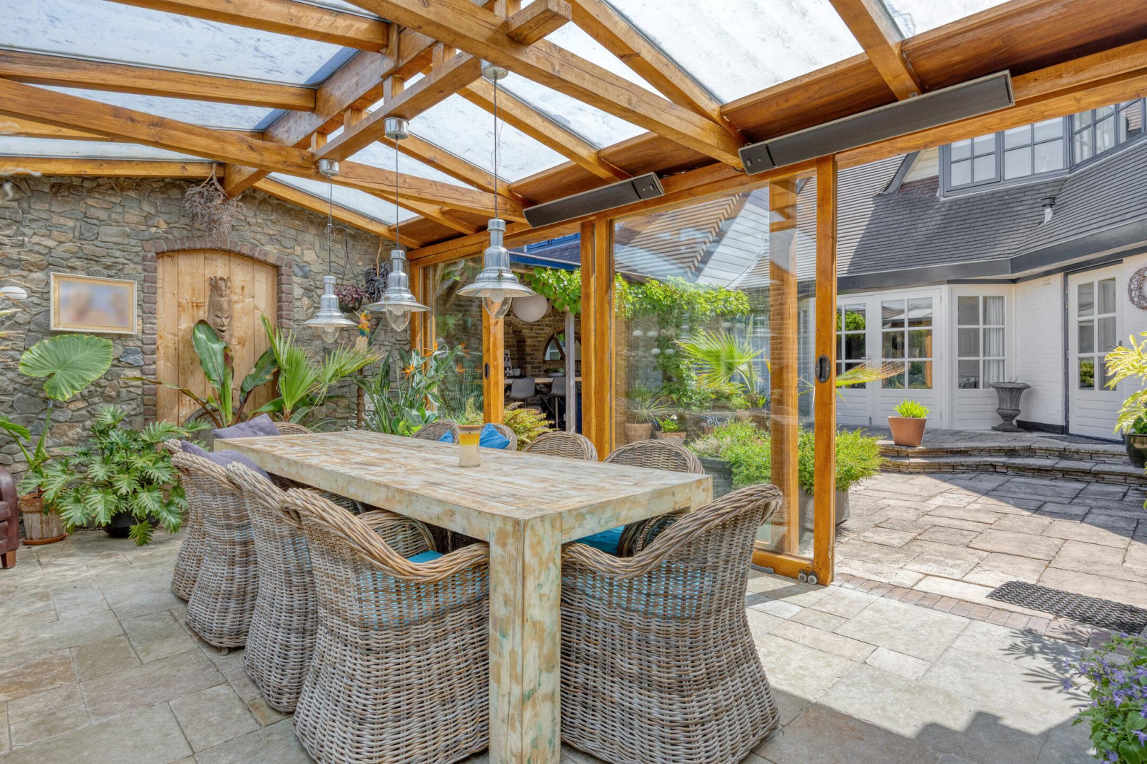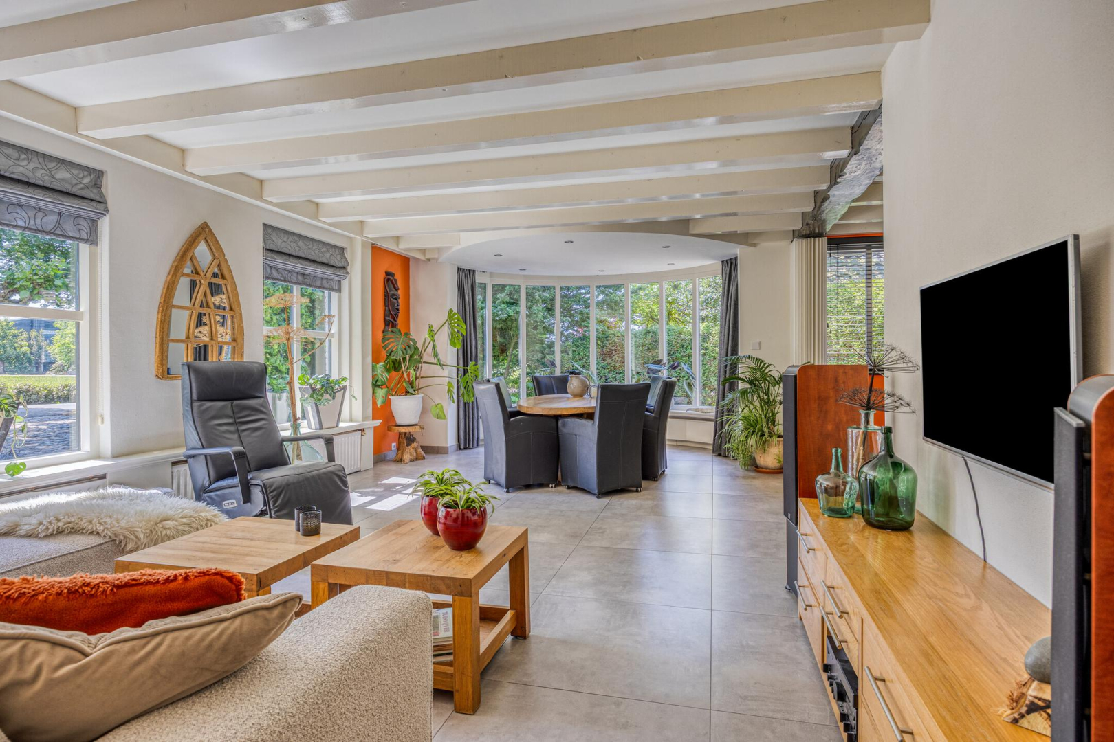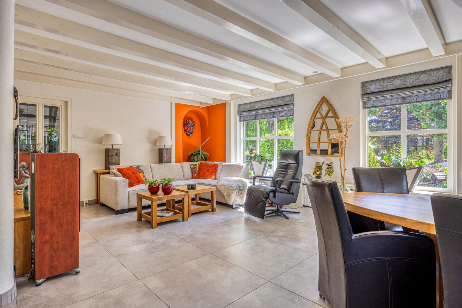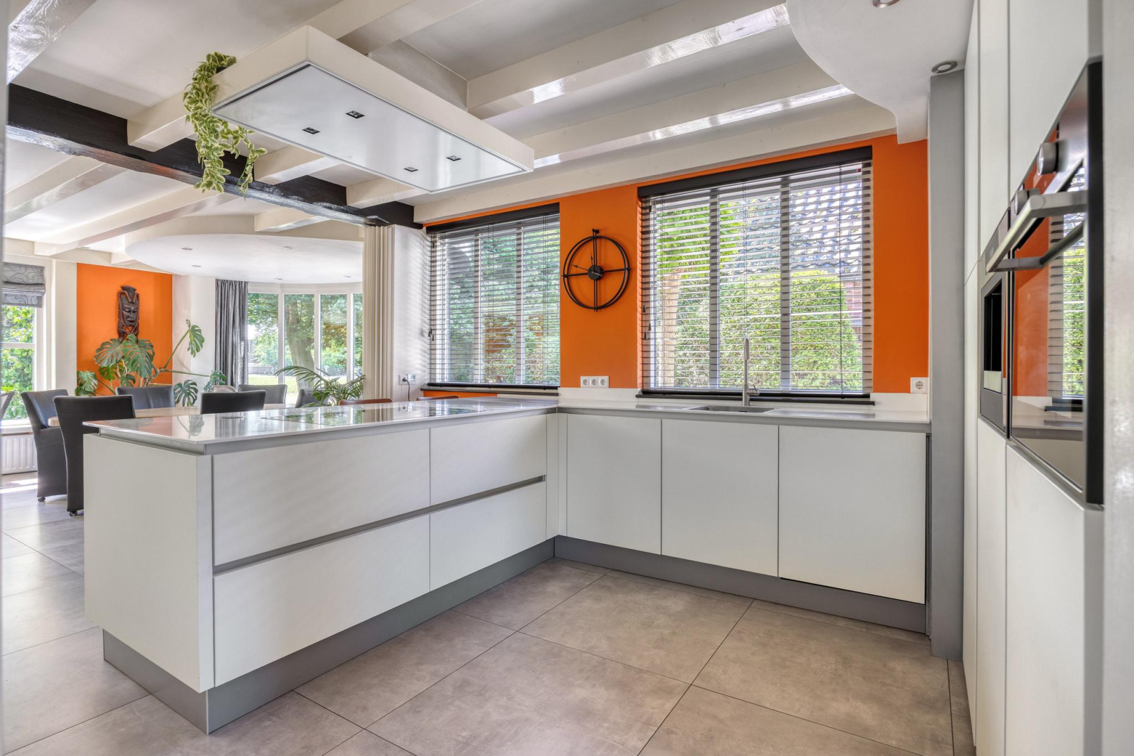 De woning beschikt over een geweldige tuin die een mediterrane sfeer oproept. Laat u verrassen door de kleurrijke borders, siergrassen en groenblijvende planten. Deze tuin is een feest voor het oog en een paradijs om in te ontspannen. De serre is stijlvol ingericht en voorzien van een complete buitenkeuken: perfect voor lange zomeravonden of knusse winterborrels. Onder de veranda geniet u van een plek om te loungen in de schaduw. De sfeervolle vijver in de voortuin is een echte eyecatcher en het grasveld achter de woning is een uitermate geschikte plek om bijvoorbeeld een potje voetbal te spelen. Uw auto stallen, klussen in en om het huis, met twee grote garages kan het allemaal. Naast en boven één van de garages is een multifunctionele ruimte, geheel naar eigen wens in te richten.